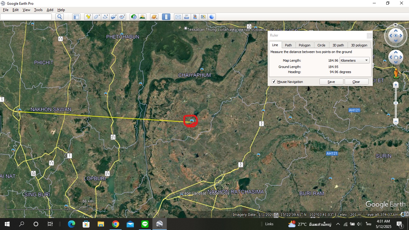 ภาพนี้ แสดงเส้นทางมาจาก นครสวรรค์ครับ เป็นเส้นตรง ประมาณ 186 กิโลฯ