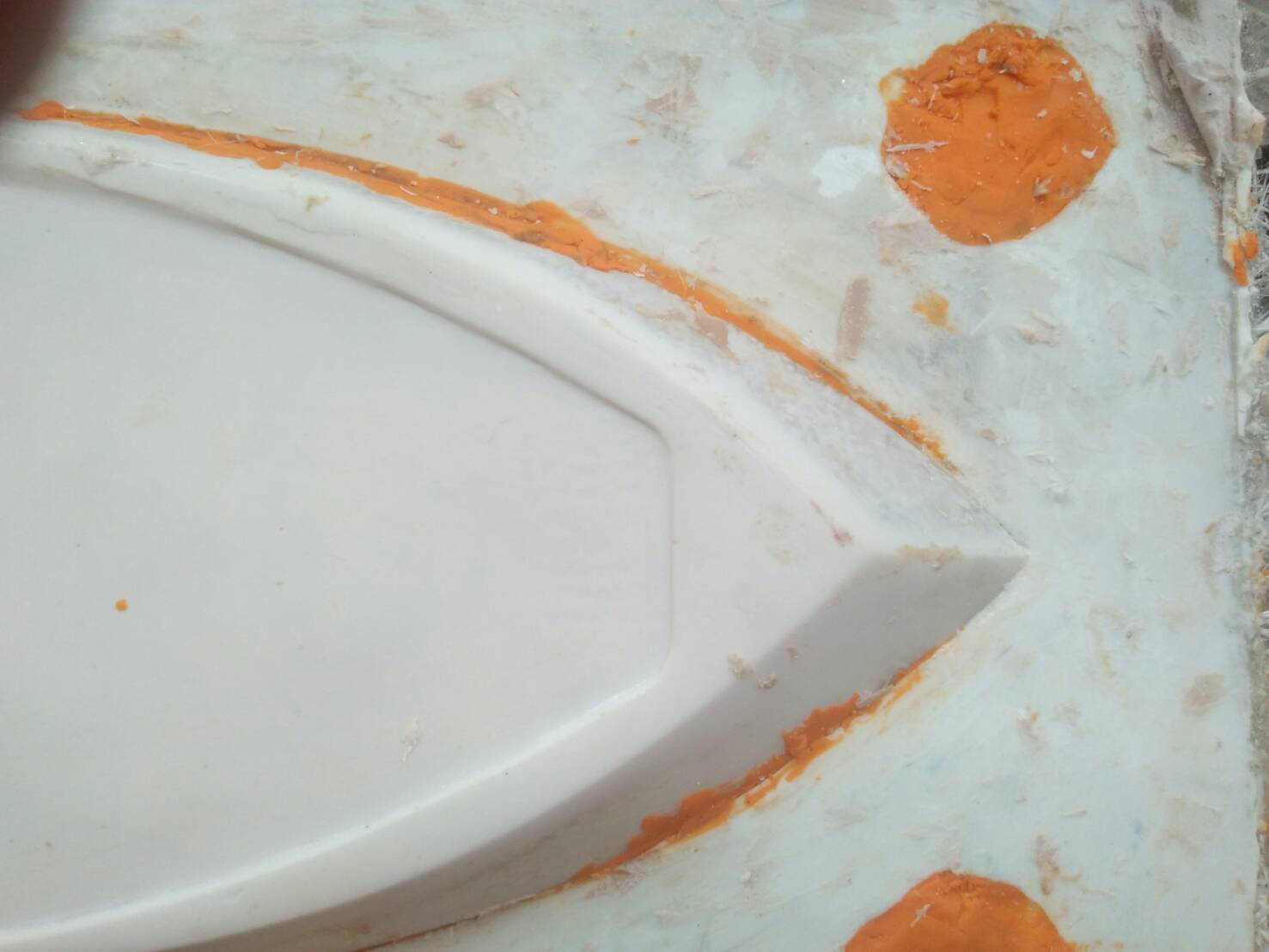 ด้วยสีโป้วแดงแล้วขัดให้เรียบ ตัดเว้าตามแบบที่เขียนไว้ มันจะไม่พอดีแปะ