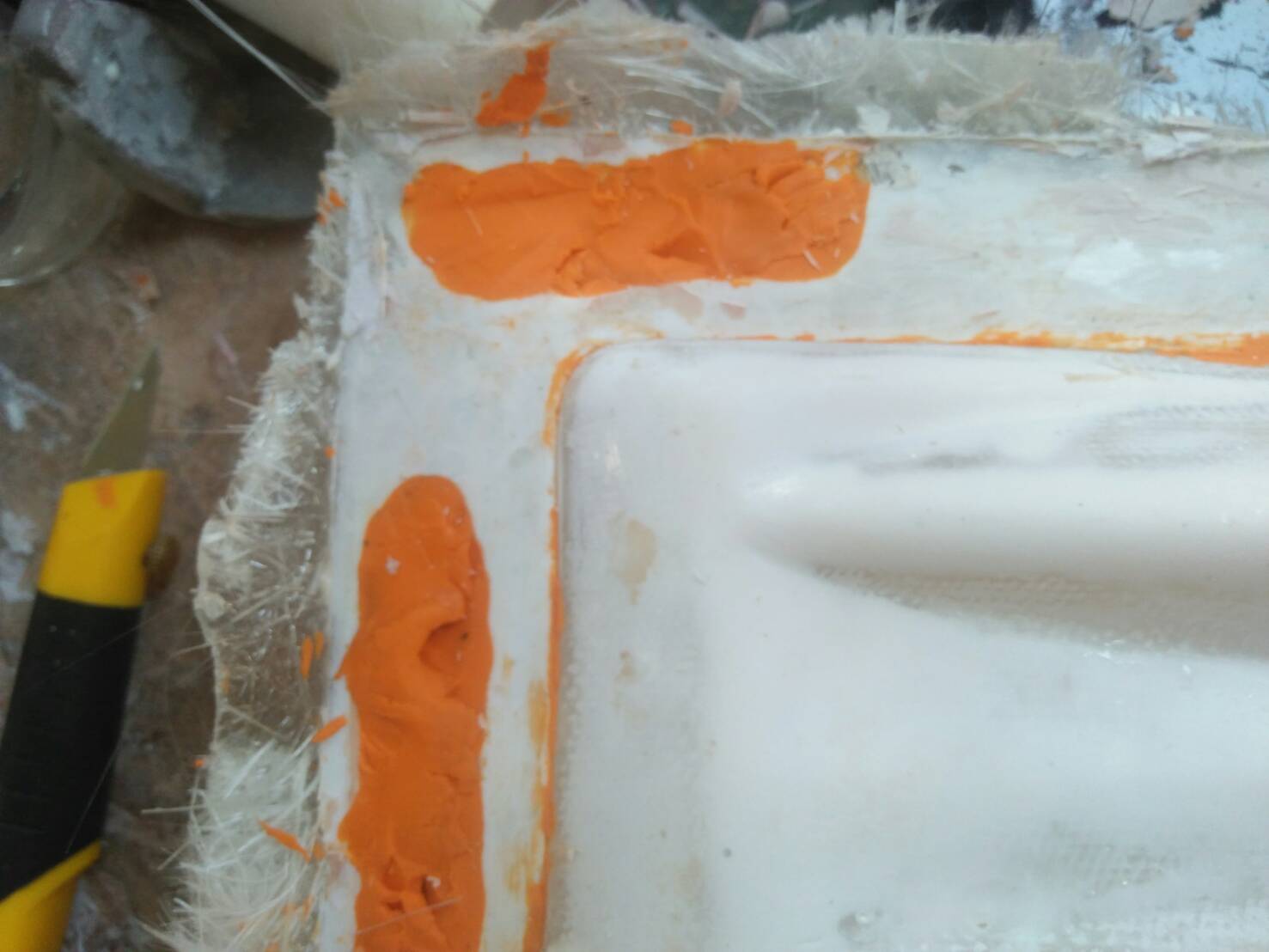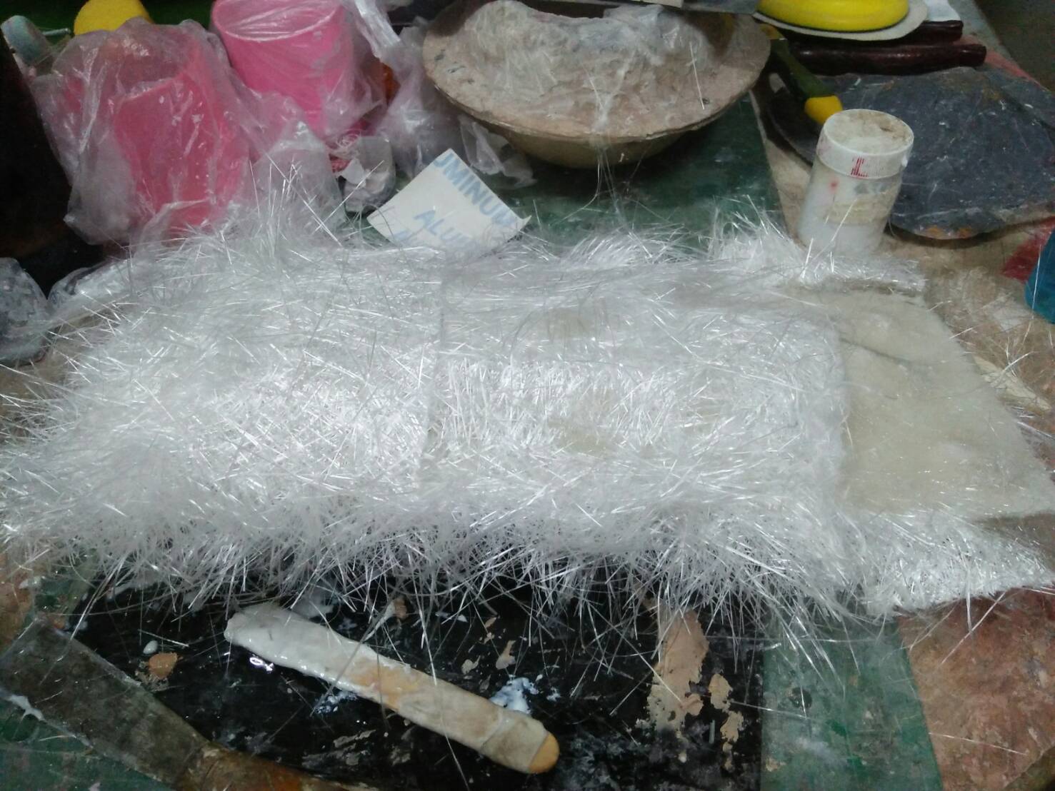 อีกชั้นให้ทั่วชิ้นงาน เมื่อแห้งดีแล้วก็เอาใยแก้วฉีกหรือตัดมาวางเป็นขิ้นๆ