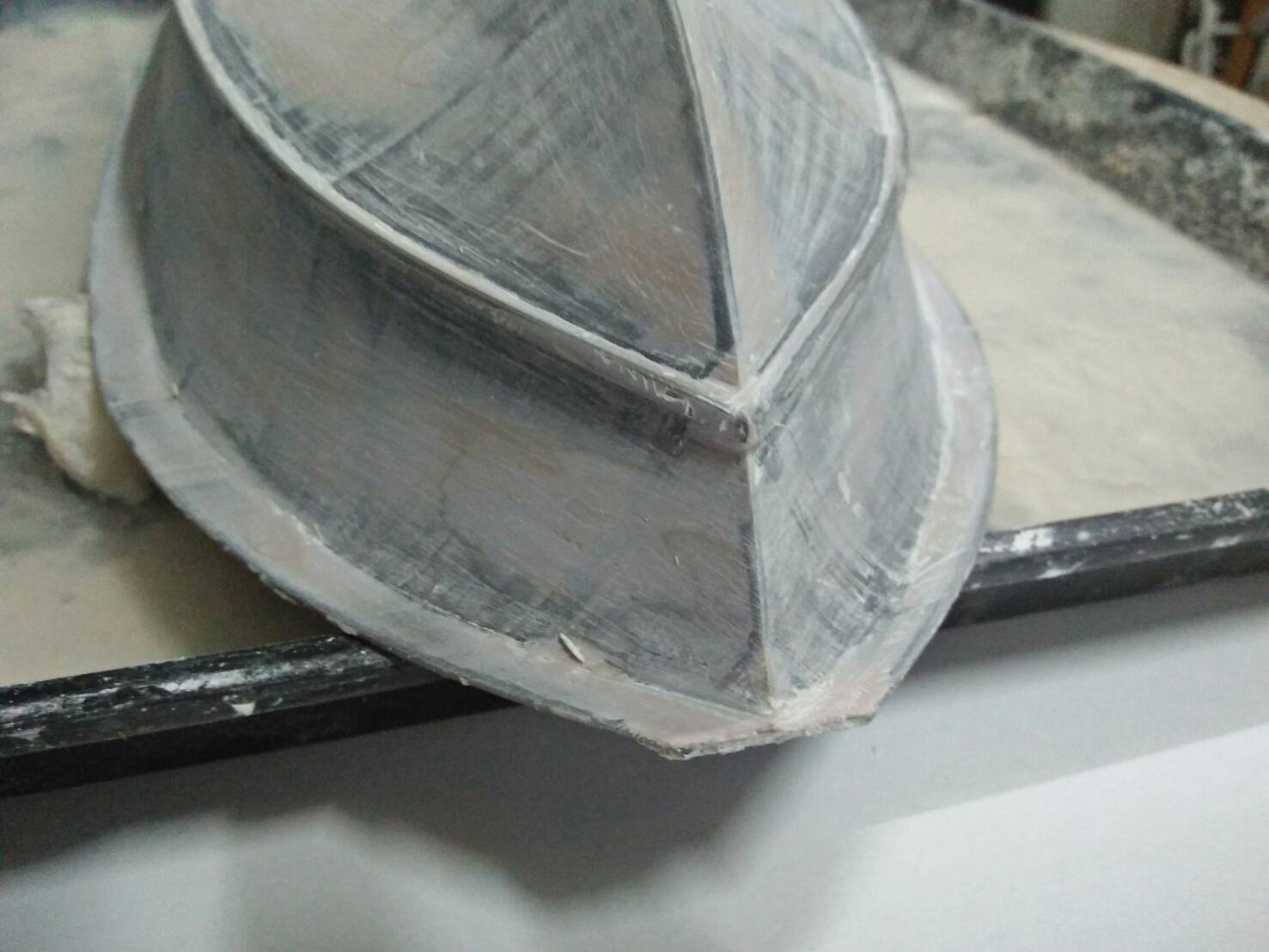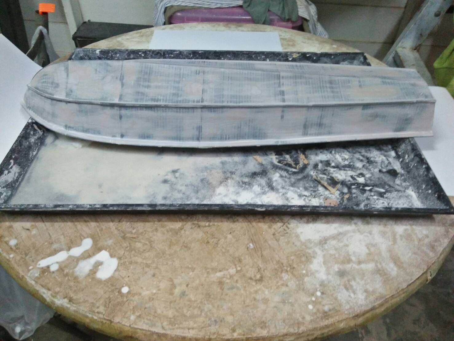 ประกอบแล้วก็ลงสีโป้วลบรอยขรุขระ รอยไม่พึงปราถนา แล้วก็รอขัดตอนมันแห้งแข็งดีแล้ว ก็ ขัดกันต่อครับ จากขั้นตอนการขัดนี้ก็จะเหมือนกับการขัดของลำที่แล้วทุกอย่าง แต่จะง่ายกว่ามากเพราะต้นแบบมีความเที่ยงตรง แม่นยำพอสมควร เมื่อขัดจนเรียบเนียนพอใจแล้วก็สาดสีใส่เข้าไปให้เป็นมันแวววับไปเลย รอสีแห้งก็ลง แว๊คถอดแบบ แล้วขัดให้ลื่นทำสองครั้ง แล้วก็เอาน้ำยา PVA มาทาหรือพ่นก็ได้ครับ สองครั้งรอให้แห้ง