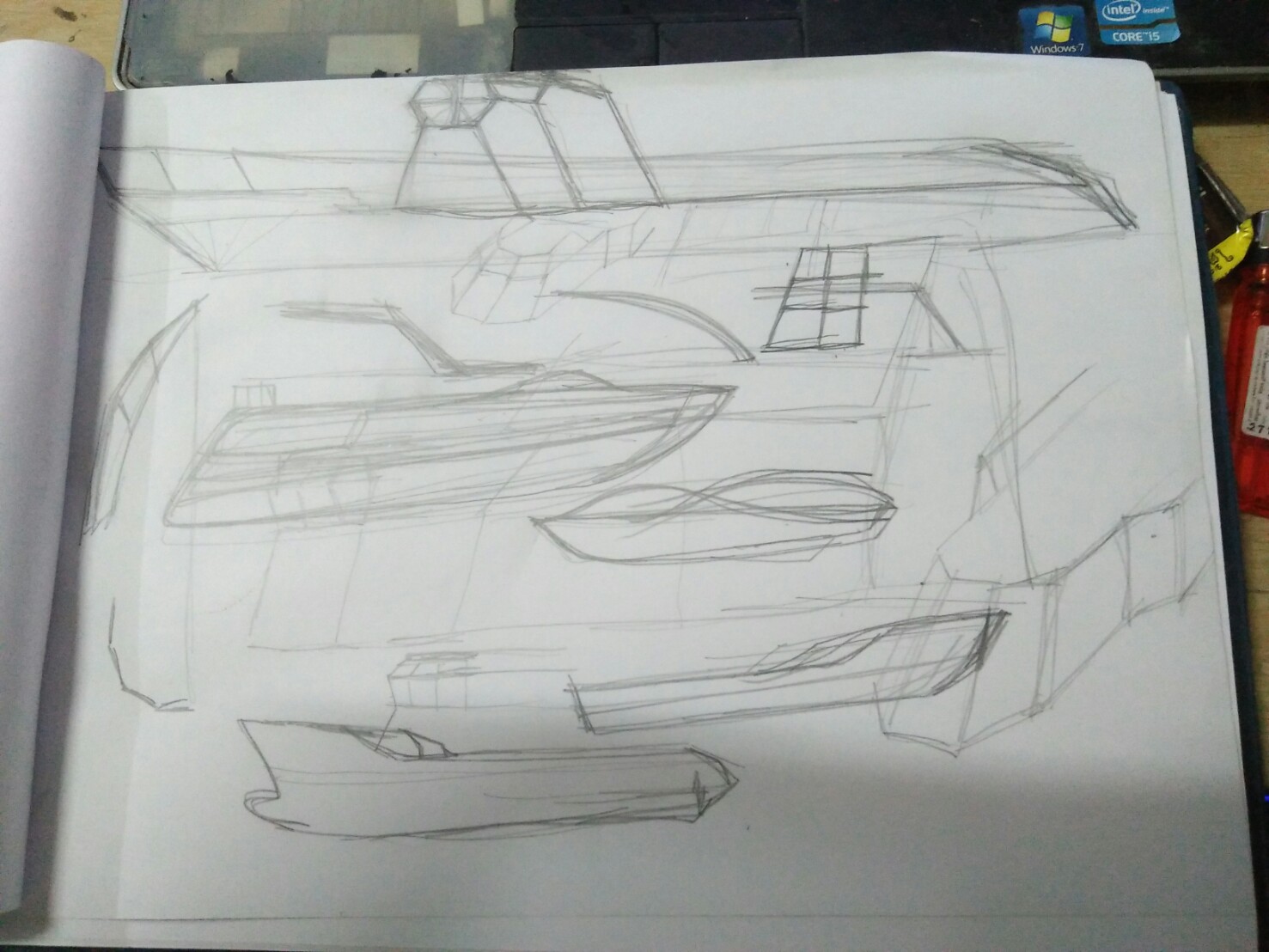 ภาพนี้เกิดจากการนั่งคิดอะไรเรื่อยเปื่อยครับ ดูวุ่นวายจัง ผมพยายามจะออกแบบเรืออะไรสักอย่าง แต่คิดไม่ออกก็เลยมั่วๆไป อะไรก็ได้ที่อยากเขียนก็เขียนลงไป