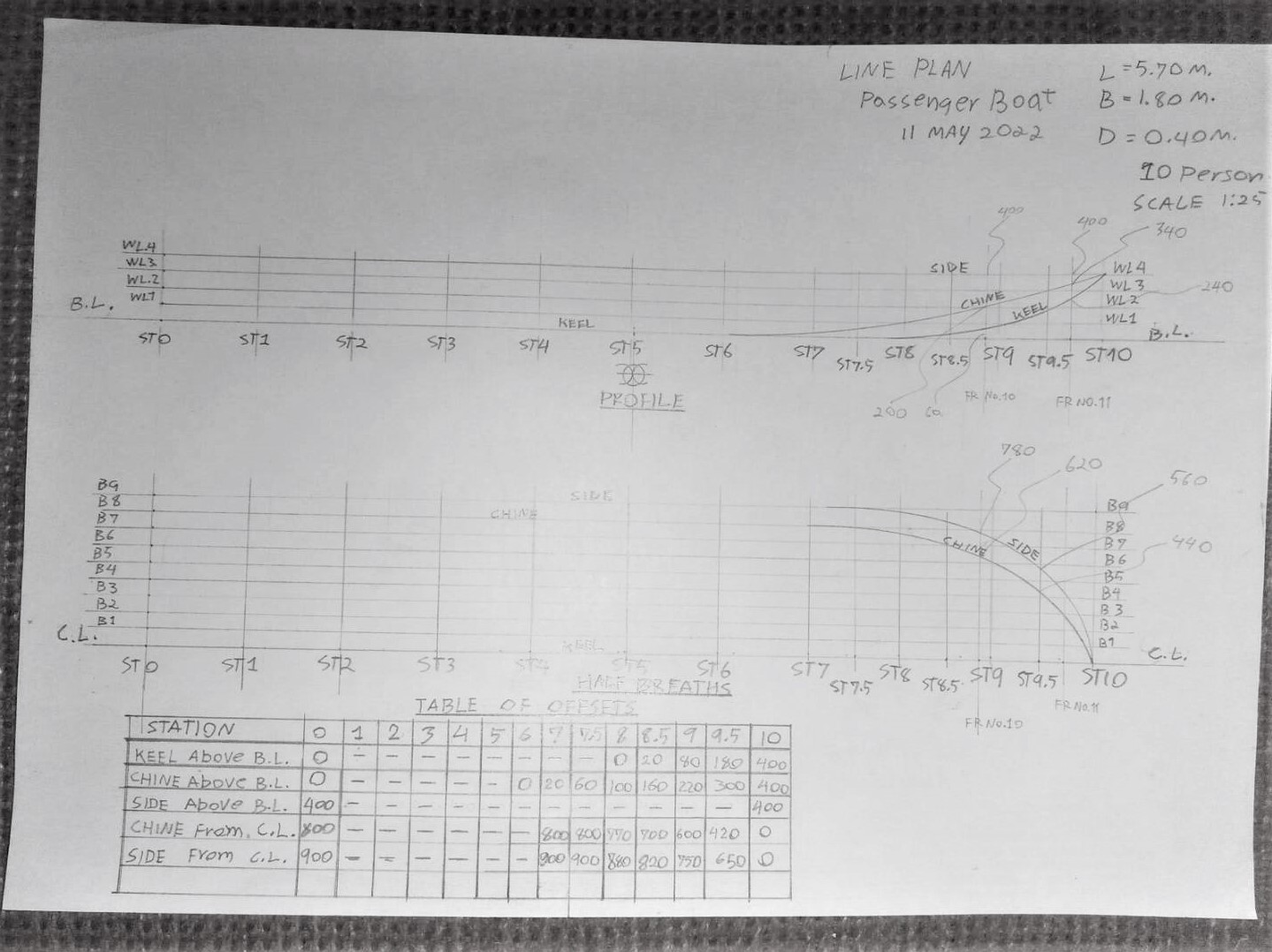 มาเตรียมกระดาษและขีดเส้นต่างๆเพื่อที่จะเขียนแบบ FRAME SECTION ของเรือโดยสารขนาดเล็กหรือจะเรียกว่าเรือกู้ภัยก็ได้ครับ จากภาพด้านบน