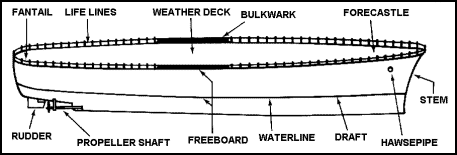 จากรูปด้านบนก็จะเป็นชื่อเรียกส่วนต่างๆของตัวเรือ รูปร่างโบราณไปหน่อยแต่ดูแล้วเข้าใจง่ายดี เรือในปัจุบัน อาจจะมีชื่อเรียกต่างออกไปจากในรูปบ้าง เนื่องจากประเภทของเรือ แต่ที่จะมีแน่ๆก็คือ