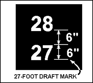 DRAFT ตรงข้ามกับ FREE BOARD คือระยะที่วัดจากระดับน้ำลงมาถึงกระดูกงู(KEEL) ถ้าเรือใหญ่หน่อยก็จะมีตัวเลขบอก DRAFT อยู่สามที่คือ ท้ายเรือ กลางลำแล้วก็หัวเรือ นั่นก็คือท้องเรือที่่ต่ำที่สุดที่ตรงนั้นจมน้ำลงไปลึกเท่าไหร่ หน่วยที่ใช้ มีทั้งเป็น เมตร และ ฟุต แล้วแต่เรือสัญชาติไหน บ้านเราใช้หน่วยเป็น เมตร แเบ่งเป็นเมตรละห้าช่วง ช่วงละยี่สิบเซ็นติเมตร